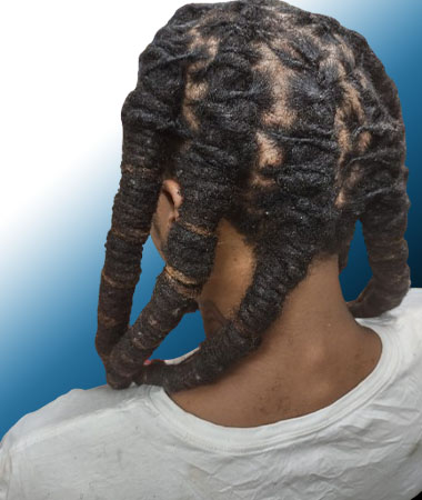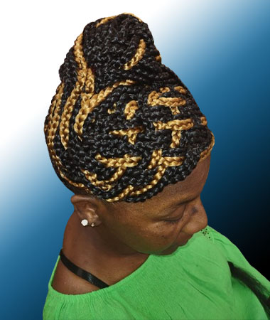 Tribal Braids (feed-in braids in the front, individuals in the back) lower back length